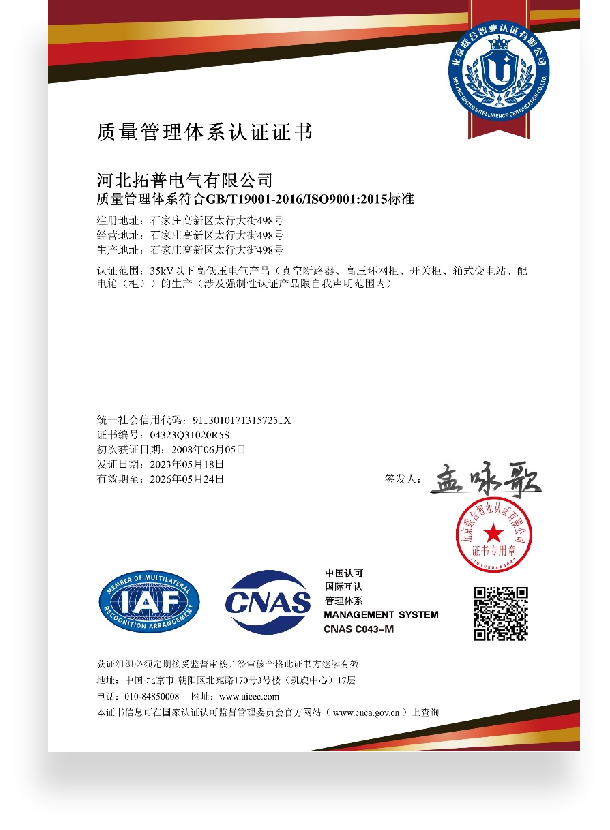 公司技術(shù)力量雄厚,檢測設(shè)備精良,項目經(jīng)驗豐富,始終遵循“高起點、高科技、高質(zhì)量”的戰(zhàn)略方針,堅持“顧客至上、優(yōu)質(zhì)高效、不斷創(chuàng)新、持續(xù)改進”的質(zhì)量方針,生產(chǎn)過程全面實施通過認證的ISO9000質(zhì)量管理體系。經(jīng)過多年技術(shù)研發(fā)及專家指導(dǎo),生產(chǎn)工藝不斷完善,生產(chǎn)規(guī)模和銷售市場日益擴大,配備了裝配及自動化生產(chǎn)線的生產(chǎn)車間。公司主營業(yè)務(wù):高低壓配電柜、真空斷路器、智能配電終端、絕緣子、電纜卡具、箱式變電器、電纜支架、重合器、負荷開關(guān)的生產(chǎn)、銷售。河北拓普電氣股份有限公司本著以質(zhì)量求生存,以信譽創(chuàng)品牌的企業(yè)宗旨,努力超越,追求卓越,為客戶提供配電系統(tǒng)可靠的解決方案,竭誠歡迎廣大客戶參觀考察洽談業(yè)務(wù),真誠合作,共同創(chuàng)造燦爛輝煌的明天。